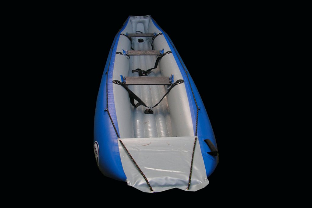 Samovylévání vody zajišťuje rukáv v zadní části kánoe. Na klidných vodách jej lze uzavřít a získat tak suchou loď.